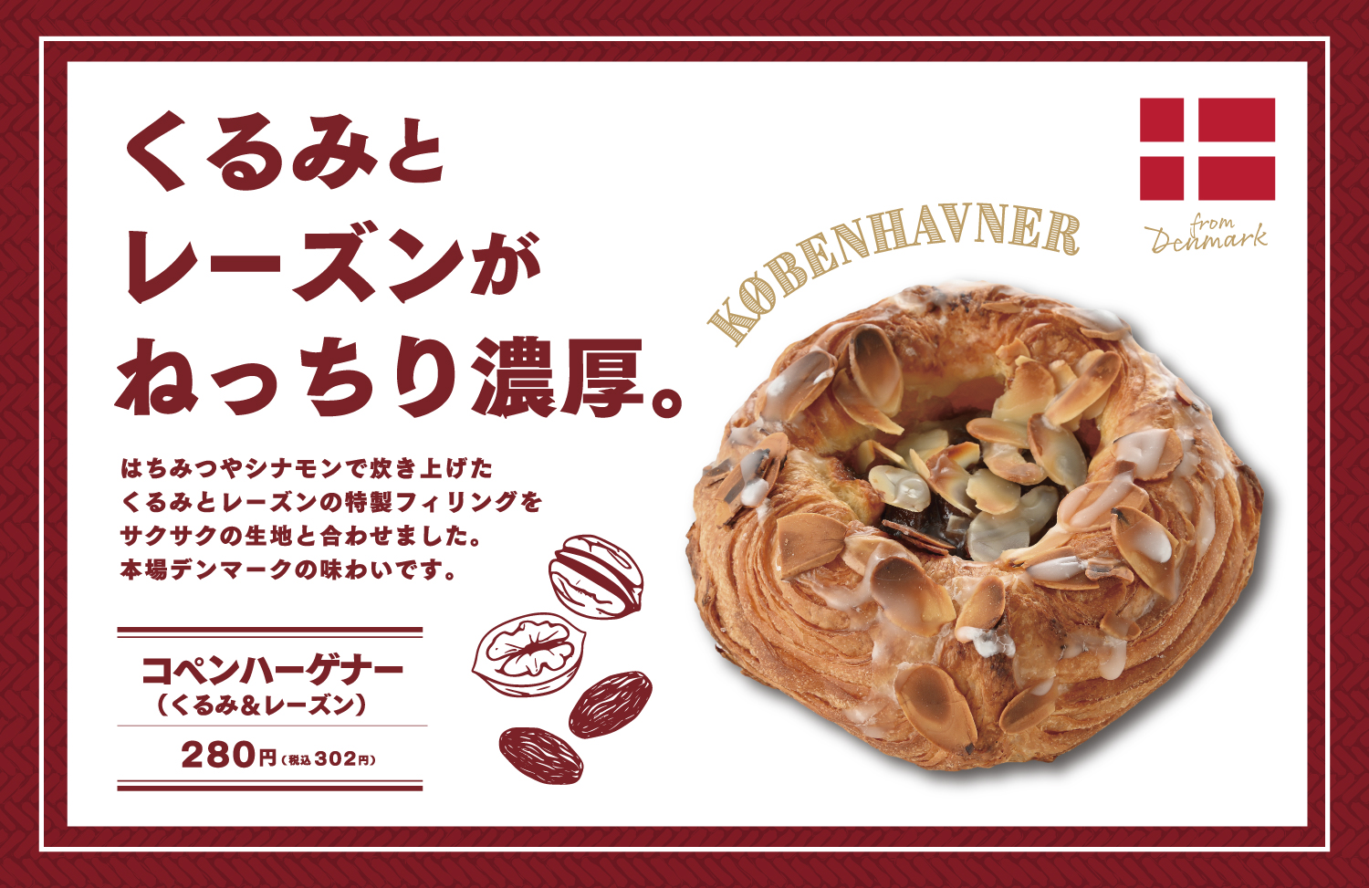 Breads商品紹介 今月の新商品Monthly Special トランドールおすすめの定番商品Our Recommendations ペストリー 今月の新商品 コペンハーゲナー(くるみ&レーズン) 食事パンMeal Bread 低温発酵製法フランスパン~瑞~(みずき) くるみ塩パン(ロレーヌ岩塩) デンマークチーズのパン(サムソー) 熟成24 イギリスパン 塩バターパン 菓子パンSweet Bread 今月の新商品 いきなりあんぱん 紅玉のアップルパイ ダークチェリー くるみロール ミルクパン とびっきりメロンパン ミルクフランス クリームくるみ 惣菜パンDelicatessen Bread 九州Pizza とんこつホワイト(きのこ) 九州Pizza ゆず胡椒バジル(チキン) 4種チーズのフォカッチャ ザ・カレーパン うまいもんサンド 黒豚メンチカツ うまいもんサンド とり天ゆず胡椒 パニーニ・ベーコン&トマト(ハーフ) とろ~り半熟卵のカレーパン ベーコンポテトドッグ サクサク骨なしチキン